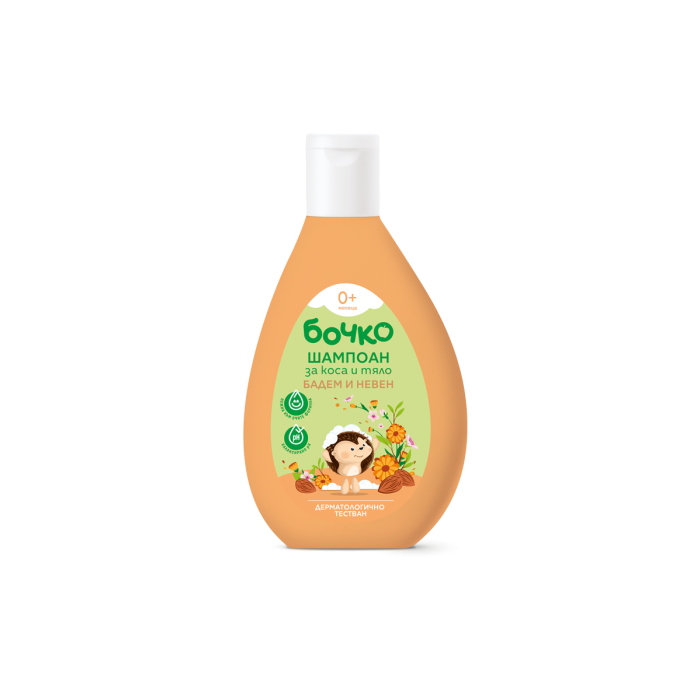 БОЧКО Бебешки шампоан за коса и тяло Бадем и невен, 200 мл