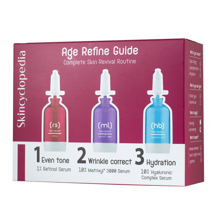 Skincyclopedia Face Serum Retinol 1 % (Retinol 0,1% + Retinyl Palmitate 0,9%) + Squalane Съставки (Inci): Caprylic/Capric Triglyceride, Squalane, Retinol (Vitamin A), Retinyl Palmitate (Vitamin A), Helianthus Annuus (Sunflower) Seed Oil, Tocopherol (Vitamin E), Tocopheryl Acetate (Vitamin E), Polysorbate-20, Bht. Skincyclopedia Face Serum Matrixyl 10 % Състав/Inci/Ingredients: Aqua (Water), Glycerin, Propylene Glycol, Butylene Glycol, Carbomer, Polysorbate 20, Palmitoyl Tripeptide-1, Palmitoyl Tetrapeptide-7, Phenoxyethanol, Hydroxyethylcellulose, Ppg-1-Peg-9 Lauryl Glycol Ether, Sodium Lactate . Skincyclopedia Face Serum Hyaluronic Acid Complex (10%) + Vitamin B5 Състав/Inci/Ingredients: Aqua (Water), Propylene Glycol, Panthenol (Vitamin B5), Sodium Hyaluronate, Phenoxyethanol, Hydroxyethylcellulose, 1,2-Hexanediol, Caprylyl Glycol, Ppg-1-Peg-9 Lauryl Glycol Ether.