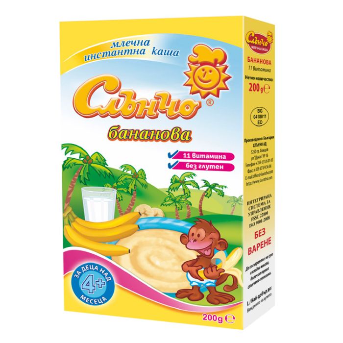 СЛЪНЧО Млечна Бананова каша без глутен 4+ месеца, 200 г
