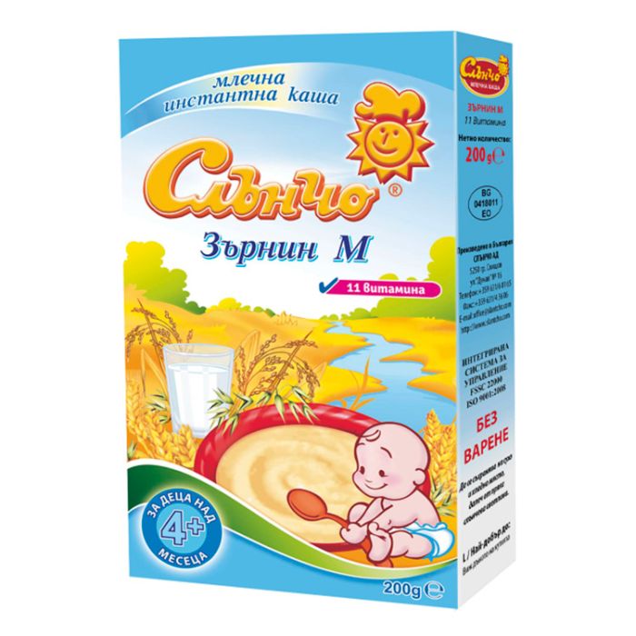 СЛЪНЧО Млечна каша Зърнин М каша 4+ месеца, 200 г