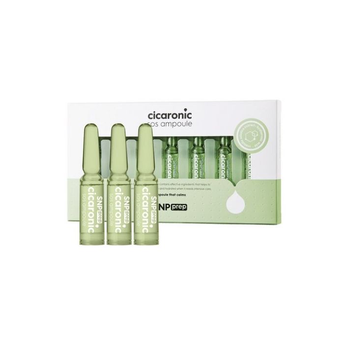 Една ампула на ден - 1 седмица Cicaronic SoS Ampoule съдържа азиатска центела, 3 вида хиалуронова киселина и серамид, които осигуряват на кожата интензивна хидратация, като същевременно подобрява текстурата, успокоява чувствителната, зачервена, суха и дехидратирана кожа и видимо намалява появата на фини линии. Ампулите имат антисептичен ефект, който предотвратява разпространението на бактериите.