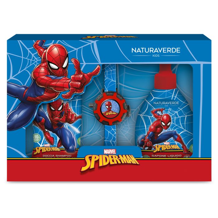 SPIDERMAN Комплект шампоан за коса и тяло 250мл, Течен сапун 300мл и гривна изстрелваща дискове