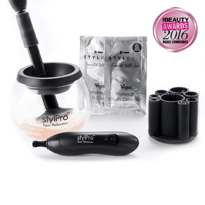 Styprlo комплект за почистване и сушене на четки за грим. Почиства и изсушава четки за по-малко от 30 секунди, така че те са веднага готови да бъдат използвани.