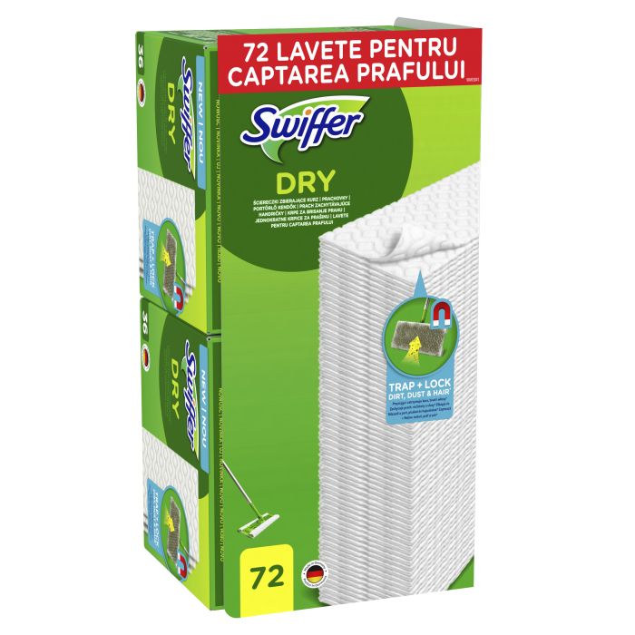 Резервните кърпички Swiffer трябва да се използват с мопа Sweeper за улавяне и задържане на мръсотията, праха и космите от всички повърхности в дома Ви, 3 пъти по-добре от традиционния моп. Може да се използват и в допълнение към прахосмукачката, за улавяне на останалия фин прах или като инструмент за почистване между чистенето с прахосмукачка, за да се избегне честото общо почистване. Как? Защо? Дебелината на кърпите и специфичния модел, съчетани с електростатичното им действие, позволяват улавянето и задържането на праха в кърпата. Освен това, с помощта на въртящата се на 360° глава на Swiffer Sweeper можете да почиствате навсякъде, дори и труднодостъпните места като под хладилник, печка и съдомиялна машина, под легла, дивани и дори ъгли и ръбове, където метлите и моп-овете не винаги могат да достигнат; не е ли изумително? С кърпите за сухо чистене Swiffer почистването никога не е било по-бързо и лесно. Съвети, които трябва да знаете: Особено лесно е почистването на косми от домашни любимци, тъй като повечето животни непрекъснато сменят козината си или ако страдате от алергии към прах. Не забравяйте, че по-меката кърпа може да се използва върху всички твърди повърхности, включително: линолеум, винил, керамика и завършени дървени подове. Резервинте кърпички са произведени от 100% рециклирани синтетични влакна. Опаковката е напълно рециклируема