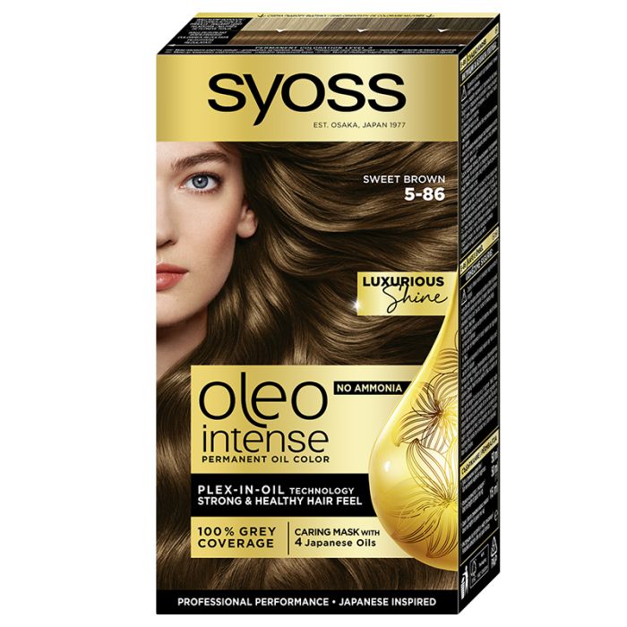 Боята за коса Syoss Oleo Intense има грижовна формула с масла, които помагат на пигментите да проникнат дълбоко в косъма за богат и дълготраен цвят. Не съдържа амоняк и успешно покрива сивите коси. Балсамът е със съдържание на арганово масло, добито чрез справедлива търговия, което допринася за мекотата и блясъка на косата.