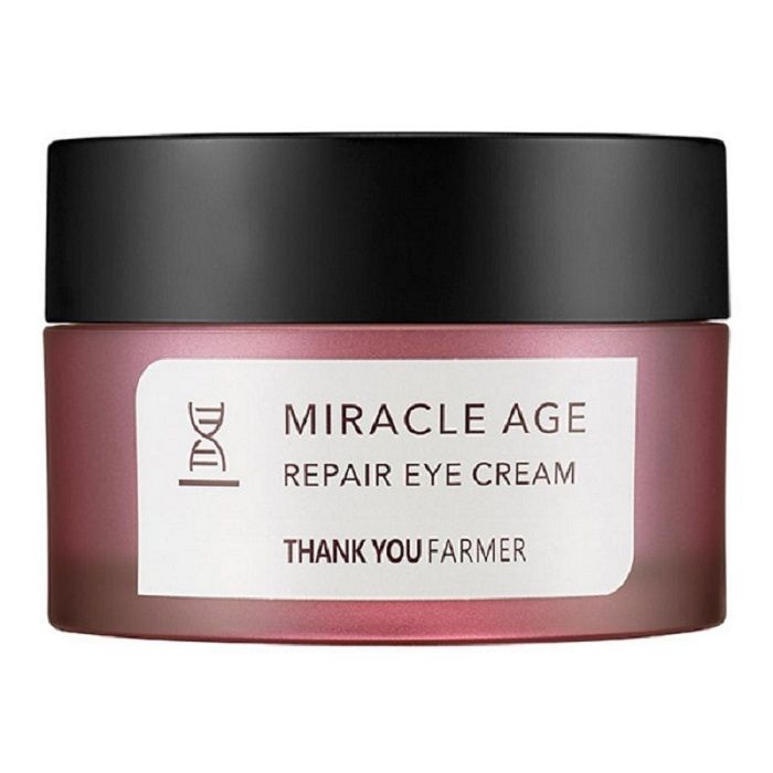 Защитете деликатната кожа под очите с крема Miracle Age от колекцията на THANK YOU FARMER. Този мощен крем за очи запълва тънкия слой кожа под очите с помощта на богатите си, овлажняващи съставки и хранителните вещества против стареене. Интензивно концентрирана формула с кремообразна текстура, съдържаща масло от шеа, за овлажняване и защита на деликатната кожа, докато екстрактът от корен от Кудзу, спомага увеличаването на колагена и на кожата да стане стегната. Екстрактът от божур осигурява антиоксидантна защита за предотвратяване на уврежданията от свободните радикали;