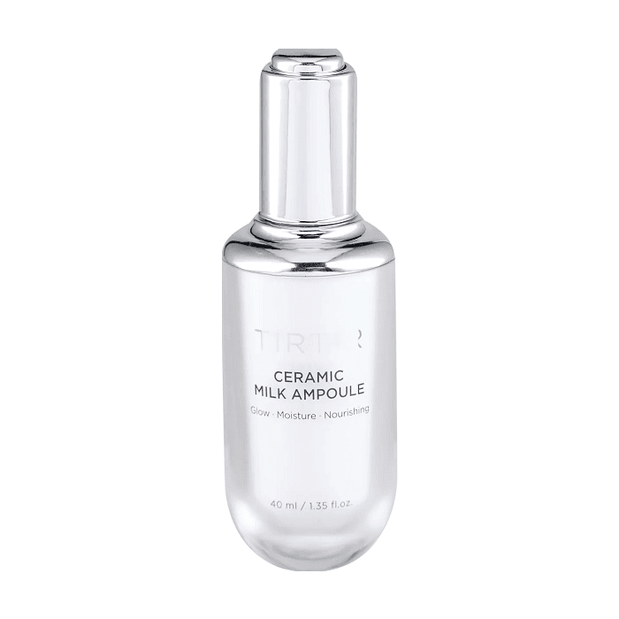 Ампулата с керамично мляко TIRTIR е висококачествен, хидратиращ серум, обогатен с натурални съставки като сквалан и екстракт от оризови трици, които осигуряват дълбока хидратация и сияен тен.