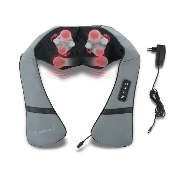 УЕЛНЕО 3Д ШИАЦУ ТАПИНГ МАСАЖОР ЗА ЦЯЛО ТЯЛО комбинира 2 вида масаж отделно или комбинирано: Шиацу и Шиацу + Тапинг. Облекчава стреса, дискомфорта и мускулното напрежение. Функционален дизайн за масаж на различни зони от тялото- врат, рамене, гръб, крака, ръце, прасци, стъпала. Две нива на интензивност. Със загряваща функция за допълнително отпускане на мускулите и за по-ефективен масаж. Практичен дизайн с велкро закопчаване- с възможност за закрепване от задната страна и по този начин още по -лесно използване на продукта върху врата или кръста, без да се държат дръжките.