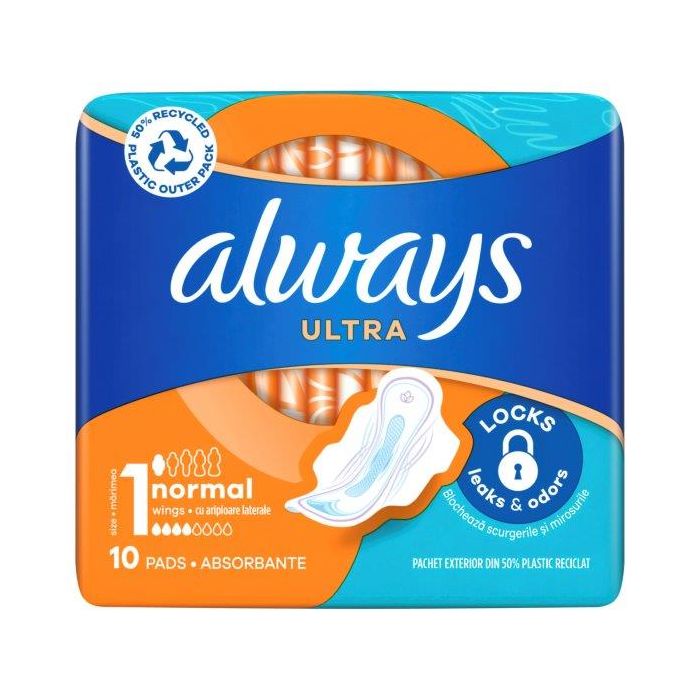 Две жени са еднакви, но Олуейз Ултра Нормал (размер 1) с крила предлага до 100% защита за вашата уникална форма и цикъл. Идеален за светъл цикъл с размер S и M или по-умерен цикъл с размер S. Дам.пр-ки Олуейз Ултра Нормал имат защитни контури и течен заключващ гел , който дърпа течността, за да предотврати течове. Въпреки че дам.пр-ки Олуейз Ултра са тънки само 3 мм, те осигуряват голямо усещане за комфорт и защита по време на менструалния цикъл. Препишете правилата с Always MyFit и ще получите безпроблемна форма за вашата форма и поток. Опитайте Always Ultra Secure Night (размер 4), най-добрите санитарни хавлии на Always Ultra за нощна защита.