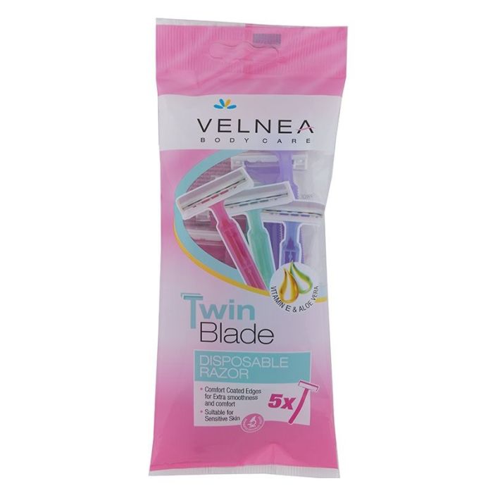VELNEA Дамска еднократна самобръсначка с 2 ножчета, 5бр.