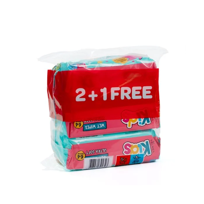 VELNEA Детски мокри кърпички, 64бр./ 2+1
