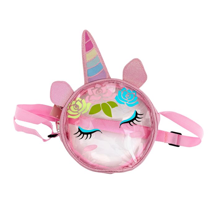 Прозрачна чанта за момичета VELNEA KIDS с атрактивен дизайн, с мотиви на еднорог и регулируема презрамка.
