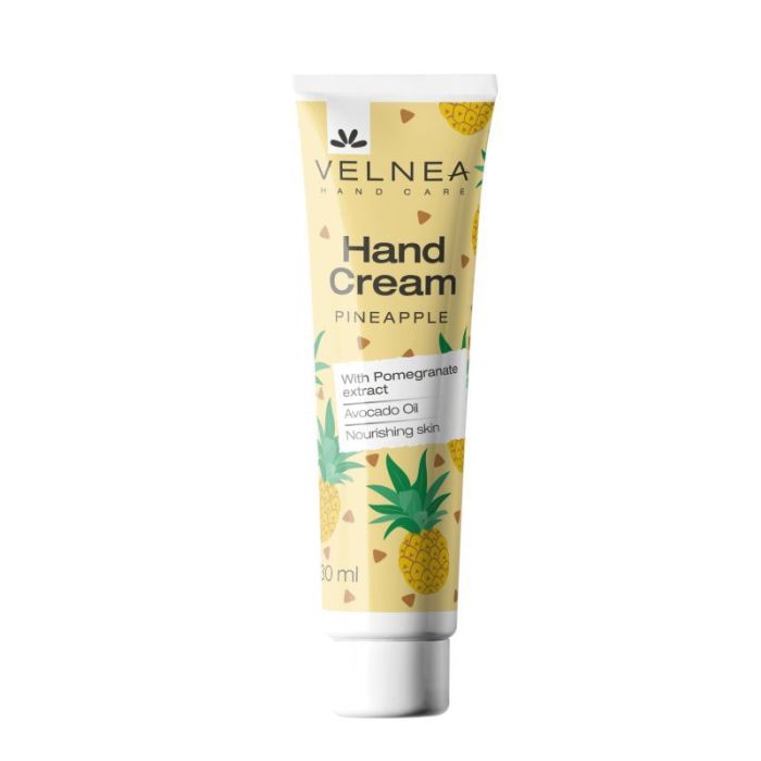 Немазна формула с аромат на ананас, която осигурява приятно и леко усещане на кожата. Базира се на благотворното въздействие на маслото от авокадо и екстракта от нар върху кожата. Маслото от шеа действа успокояващо на сухата и раздразнена кожа и спомага за нейното възстановяване. С ежедневна употреба на крема ръцете ви ще бъдат поддържани и гладки. Дерматологично доказана поносимост от кожата.
