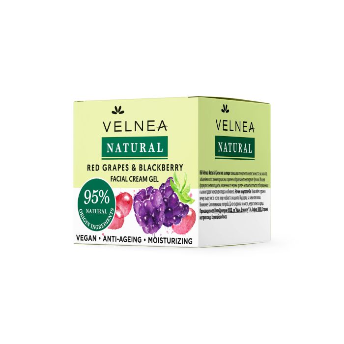 НАТУРАЛЕН КРЕМ ЗА ЛИЦЕ VELNEA повишава стегнатостта и еластичността на кожата, като забавя естествения процес на стареене и появата на първите бръчки. Мощна формула с антиоксиданти, извлечени от червено грозде, екстракти от листа на боровинка и къпина, правят кожата ви гладка и обновена. Подходящ за всеки тип кожа.