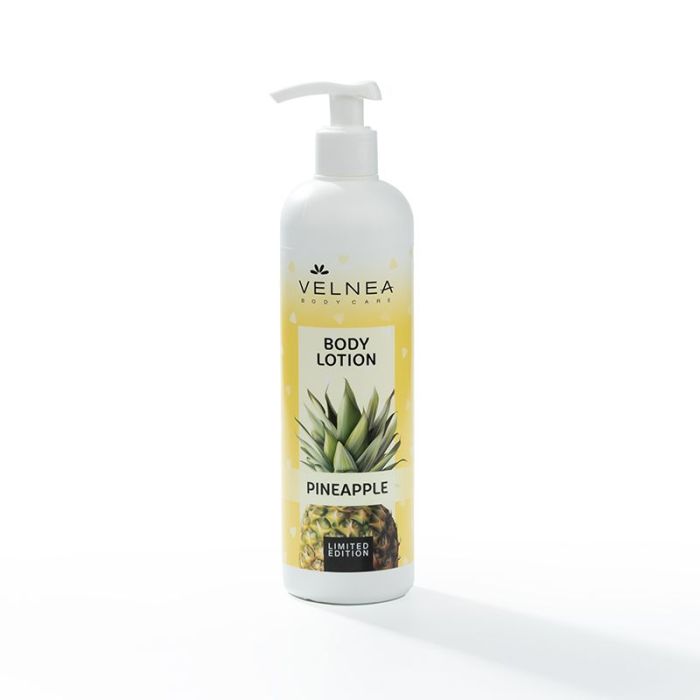 VELNEA Лосион за тяло Ананас е специално формулиран с пантенол, витамин Е, масло от ший и глицерин за вашата ежедневна грижа за кожата.