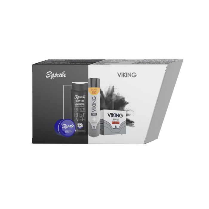 VIKING SENSITIVE Комплект Крем Здраве, 30 г + Шампоан с активен въглен, 390 мл + Пяна за бръснене, 250 мл + Лосион за след бръснене, 100 мл