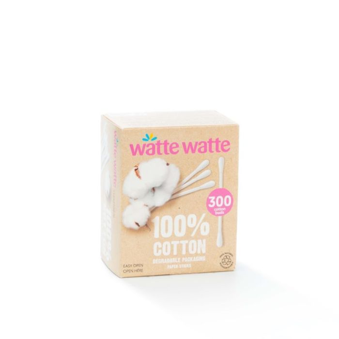 WATE WATE Памучни клечки за уши с хартиена дръжка, 300бр