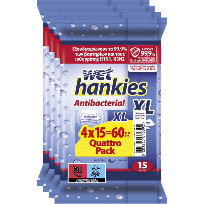 WET HANKIES Антибактериални мокри кърпички Clean XL, 15 бр. 2+2