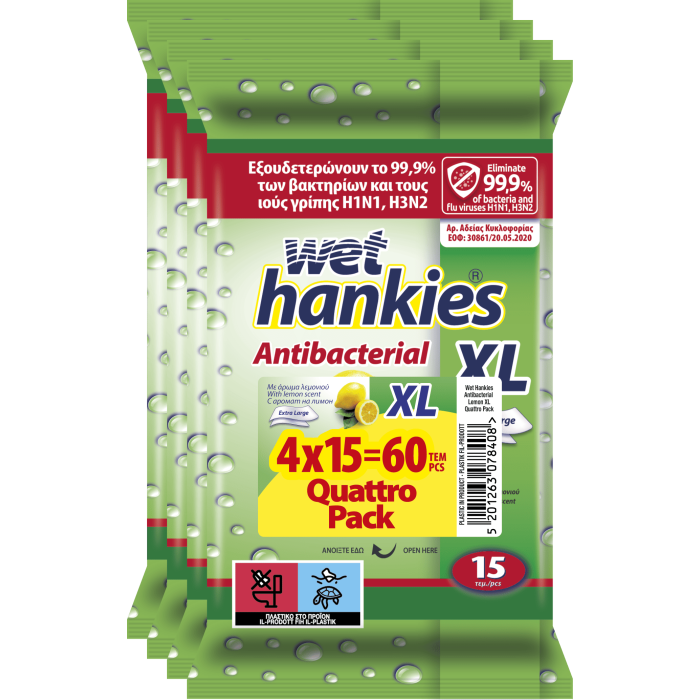 WET HANKIES Антибактериални мокри кърпички Lemon XL, 15 бр. 2+2