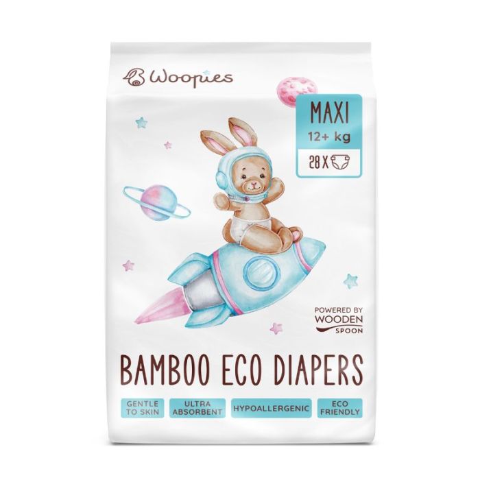 WOODEN SPOON WOOPIES Бебешки еко пелени за еднократна употреба Maxi 12+кг., 28бр