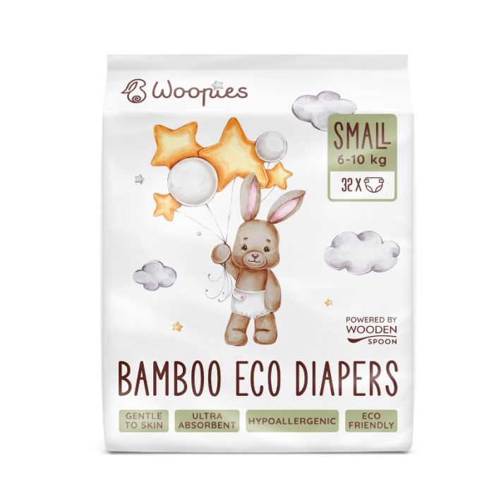 WOODEN SPOON WOOPIES Бебешки еко пелени за еднократна употреба Small, 6-10кг., 32 бр