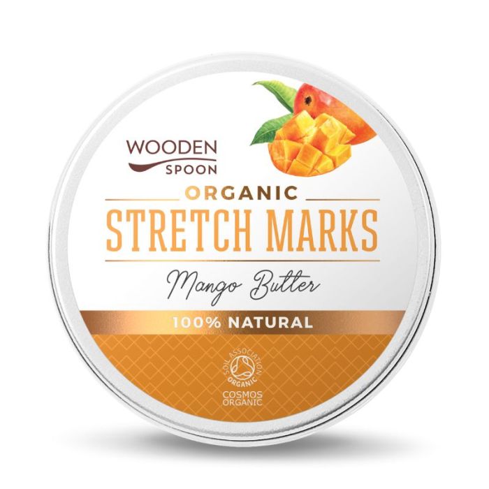 Основните причини за появата на стрии са липсата на достатъчно еластични влакна в кожата и нарушение в синтеза на колаген. Неприятните линии се появяват най-често при наддаване на килограми, бърз растеж в пубертета, по времето на и след бременността. Създадохме универсално масло за защита от стрии, което е подходящо за всички възрасти при покачване на килограми или сваляне, за бременни и за тийнейджъри. Хидратира кожата в дълбочина, подобрява еластичността и я подпомага да се регенерира, когато е подложена на бързо разтягане. Ценното масло от семена на манго е богато на витамини А, Е и Ц. Има силни антиоксидантни, антибатериални и антимикробни свойства. Всички тези ценни активни вещества, които се съдържат в натуралното студенопресовано масло от манго, доказано подобряват производството на еластин и колаген. Wooden Spoon маслото за стрии с манго съдържа натурални, био серитифицирани и хранителен клас съставки. Не съдържа вода, без добавени аромати, парафини, ГМО и петролни деривати. Маслото има пухкава текстура, която се топи при допир с кожата. Има много деликатен естествен аромат на натурални масла. Успокоява усещането за сърбеж и дразнене. Предназначено е за употреба в зоната на корема, гърдите, бедрата, ханша. Подходящо е за ежедневна употреба по време на и след бременност. Продуктът е съобразен с последните изисквания на ЕС и има външна професионална оценка за безопасност и ефективност.