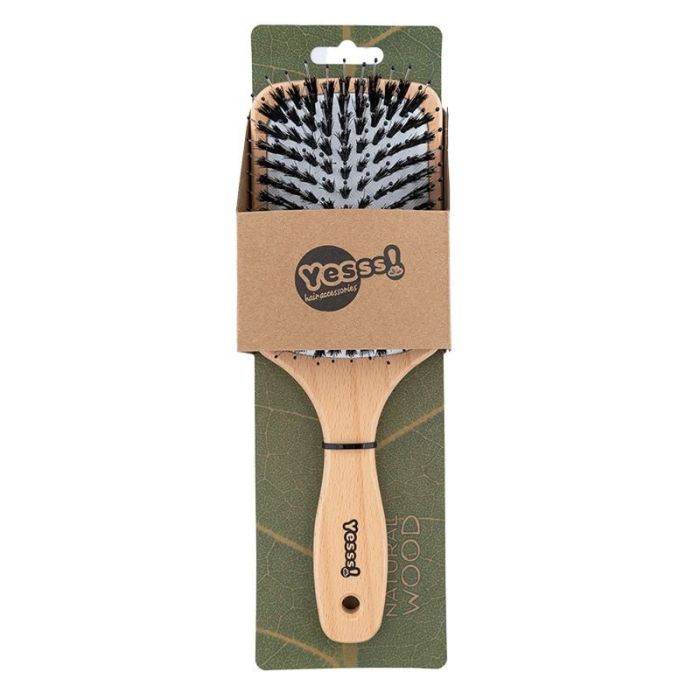 Голяма дървена четка за коса. Бамбуковата четка за коса придава на косата копринен блясък .