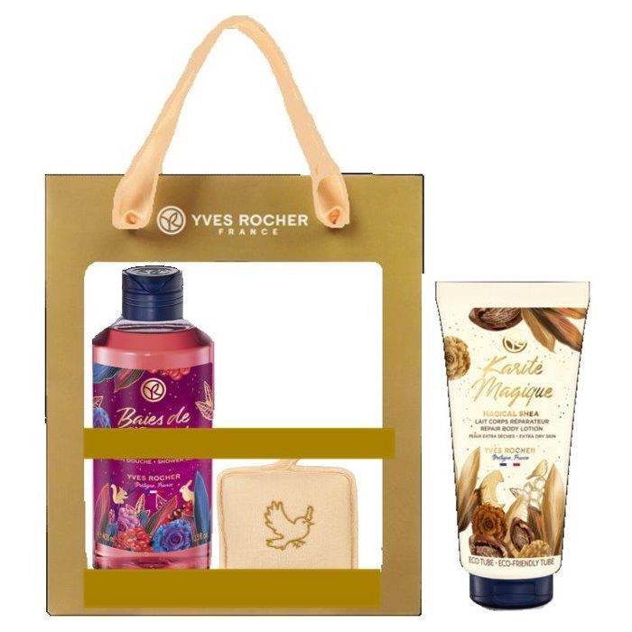YVES ROCHER BAIES DE MINUIT Подаръчен комплект душ гел 400 мл + мляко за тяло 200 мл + гъба за баня