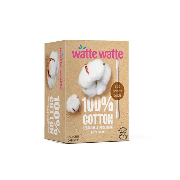 WATTE WATTE Памучни клечки за уши с хартиена дръжка 300 бр