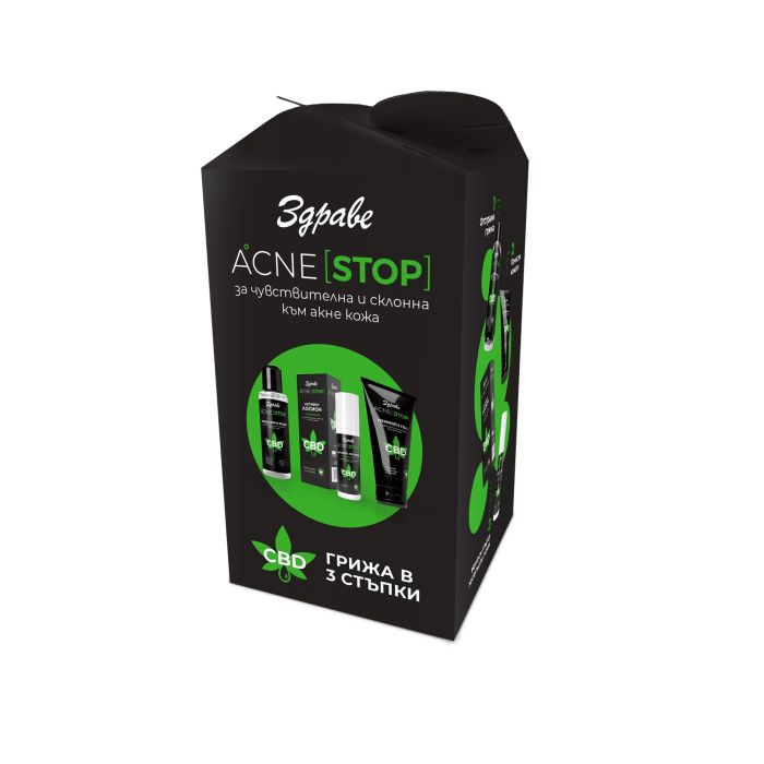 Активният лосион Здраве Акне Стоп е предназначен за грижа за чувствителна, проблемна и склонна към акне кожа. Маслото CBD, известно като канабидиол, се извлича от стъблото на растението коноп. Познато е със своето противовъзпалително и успокояващо действие. Приложен върху пъпките, лосионът интензивно почиства и нежно ексфолира кожата, като отстранява повърхностните мъртви клетки. Стяга порите и активно подпомага борбата с микроорганизмите, причиняващи акне, като създава неблагоприятна среда за развитието им и така предотвратява появата на черни точки и пъпки. Регулира прекомерното омазняване на кожата, подобрява тонуса, намалява зачервяванията.
