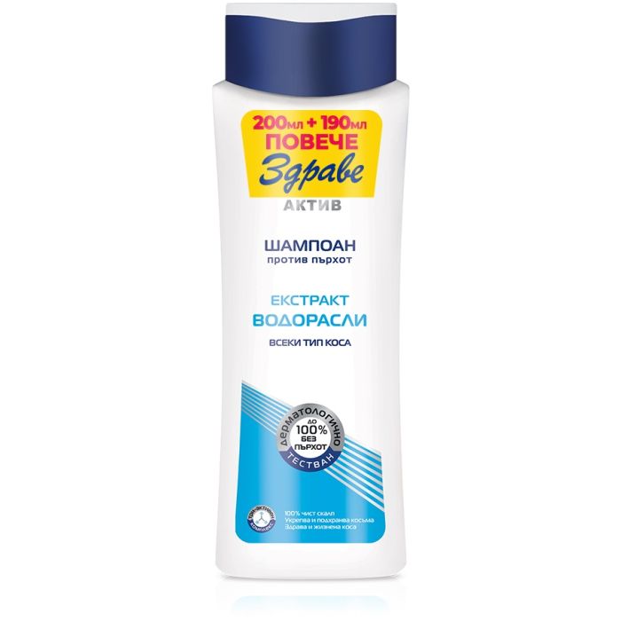 ЗДРАВЕ АКТИВ Шампоан водорасли 200+190 мл