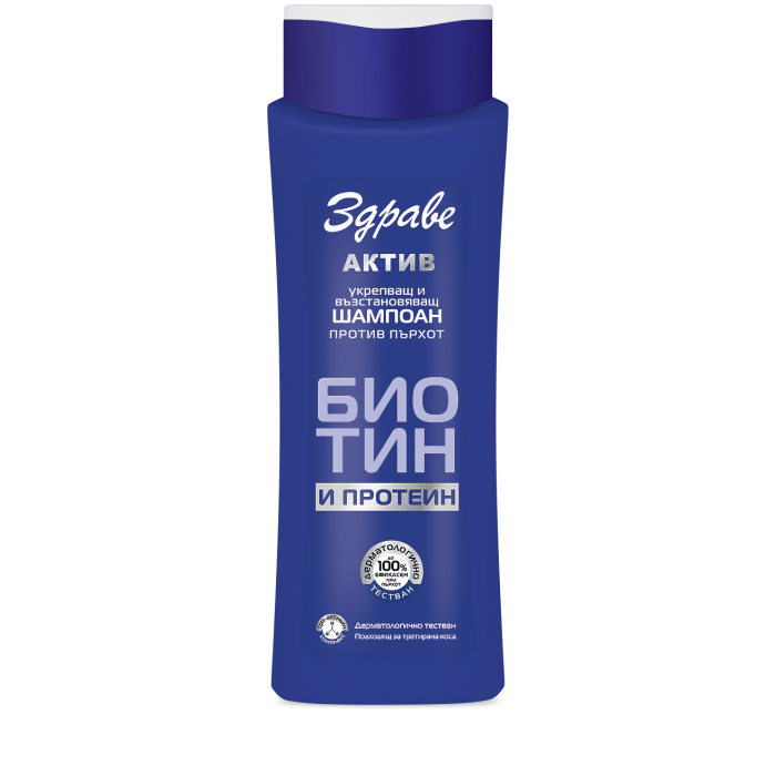 Здраве Актив е укрепващ и възстановяващ шампоан с биотин и оризов протеин, спомагащи подхранването на косъма и укрепване на космения фоликул.