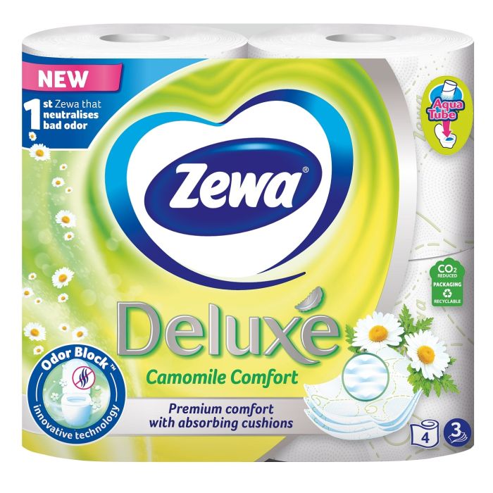 • Технология OdorBlock™- първата Zewa тоалетна хартия, която наистина премахва лошите миризми! Новата ароматна технология OdorBlock™ ефективно премахва усещането за лоши миризми в тоалетната като блокира специфични рецептори в носа, за да се усеща само приятната миризма на Zewa аромата.
