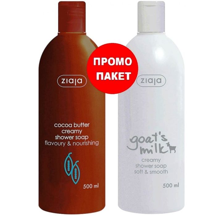 ZIAJA Душ гел какао и душ гел козе мляко, промо пакет 2 х 500 мл.